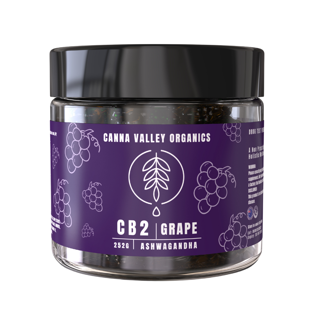 Experience the power of nature with our Ashwagandha & CB2 Grape Burst Gummies! Formulated to help you stay calm, recover faster, and enjoy better sleep, these gummies are your new daily wellness essential. Each gummy is infused with Ashwagandha, a powerful adaptogen known for its ability to reduce stress and support mental clarity, while CB2 Beta-Caryophyllene provides targeted anti-inflammatory and pain relief benefits. Deliciously flavored with a burst of grape, these gummies make incorporating wellness into your routine easy and enjoyable.